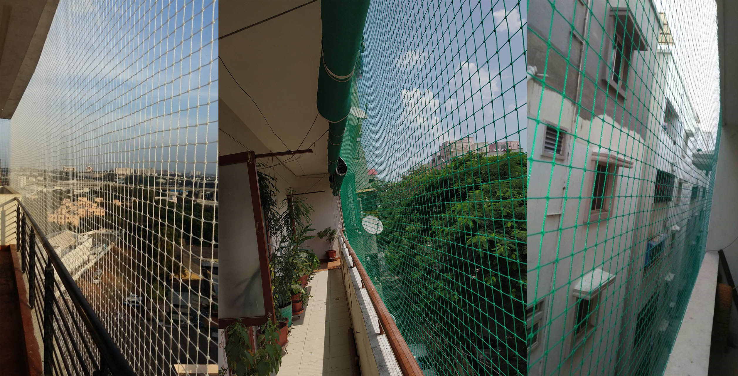 We do all types of Balcony Net Installation, Bird Net for Balcony, Anti Bird Netting, Apartment Balcony Netting, Pigeon Net Installation, Industrial Bird Netting, Bird Net Fitting, Bird Net Installation, Cricket Net Installation, Terrace Top Net Installation with Warranty for Nets and its Installation